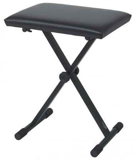 szintetizátor-padok acélcső összecsukható  3 különböző magasság állítható be rajta ülés 43 x 31 cm, fekete műbőr bélés 6 cm magasság 50 - 57 cm súlya 4,5 kg